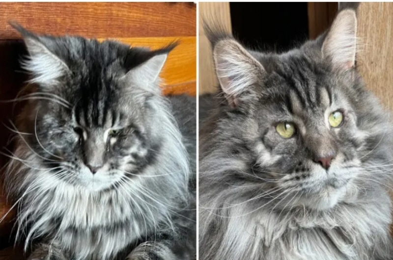 6개월 된 메인쿤 종(Maine coon) 진시(Jinxy)의 주인은 진을 수의사(눈꺼풀 전문의)에게 데려갔다.