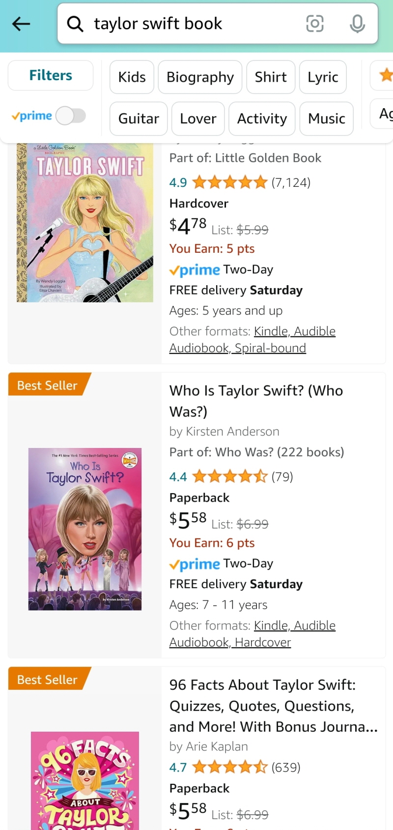 미국 아마존에 들어가 보면 테일러 스위프트에 대한 굿즈나 책을 검색해 보면 엄청난 아이템을 파는 것을 볼 수 있습니다.