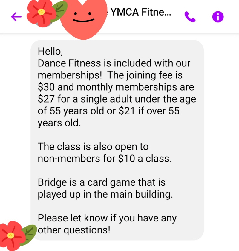 통여사(Chubby ma'am)께서 YMCA 프로그램을 이용해보려고 페이스북 채팅으로 문의를 했는데 묻지도 않았는데 '55세 이상'은 할인이 있다고 친절히 알려주셨네요.  통여사는 물론 할인을 받을 나이가 아니라 조용히 묻어둔 카드를 들고 가 신청하셔답니다.