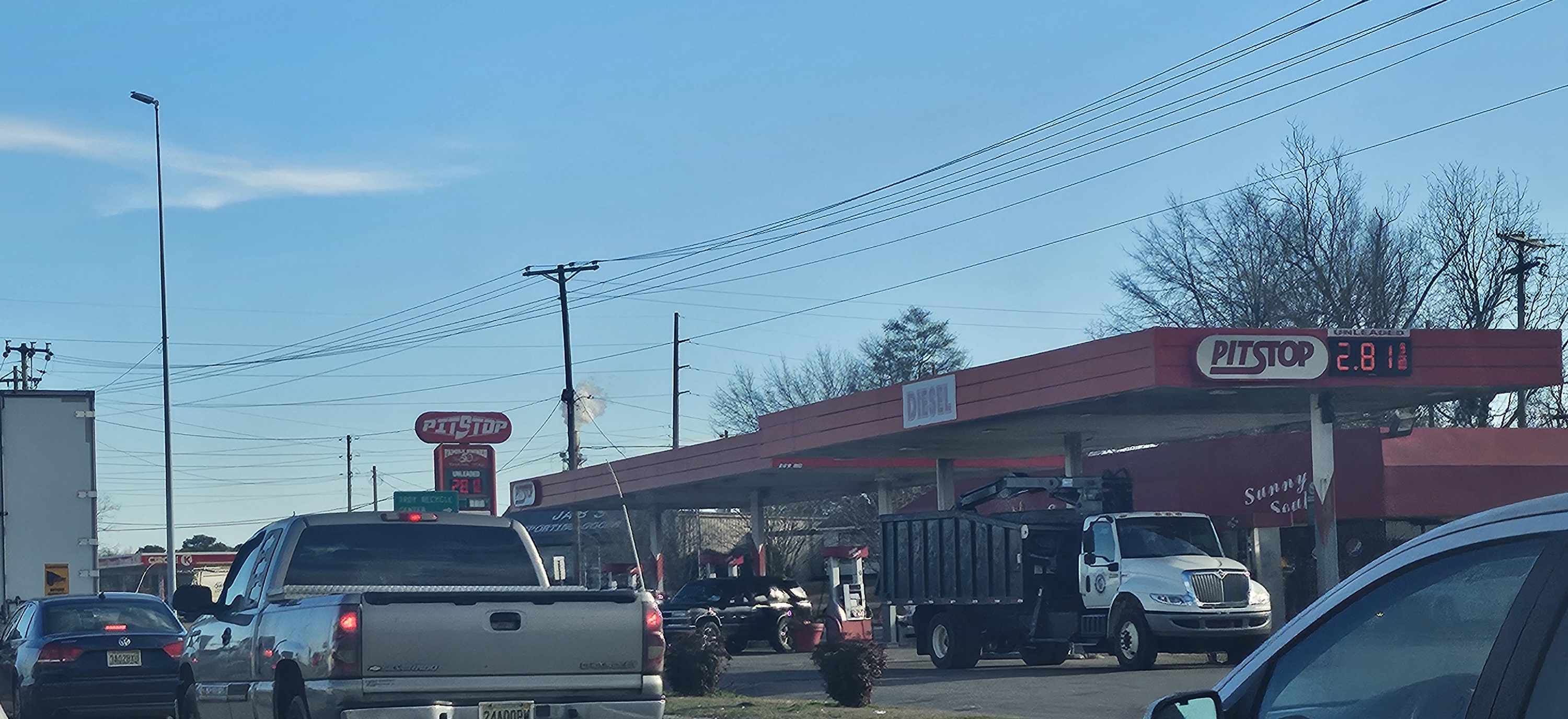 몇몇 주유소 "Pit Stop"이라는 표지판이 보이는데요 . "여행가는 도중에 잠시 들르다" 뜻으로 잠시 세워 화장실을 가거나, 요기를 하거나, 잠시 쉬는 것을 말합니다.