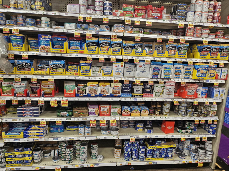 그런데.....미국에도 떡하니 참치 가공식품이 있어요. 캔부터 ~ 팩까지, 기름 뺀 참치도 다양한 칼로리가 표시된 제품까지