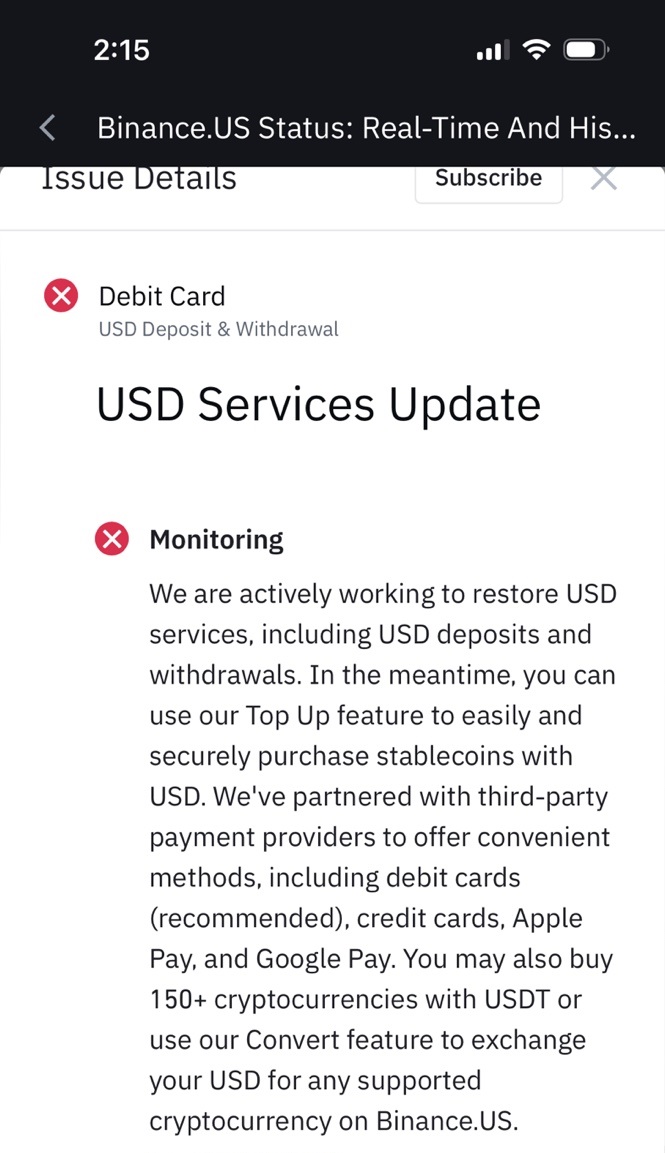 그러나, 미국은행은 바이낸스 거래를 위험한 리스크로 간주하고 거래소 이용을 제한했다.