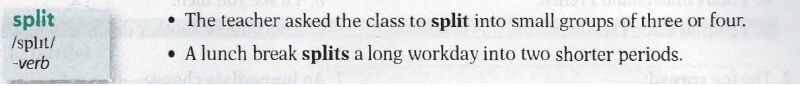 ② Split은 기본적으로 활용은 동사로 'to dive'입니다.