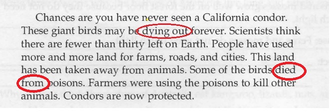 “ 캘로포니아 콘돌(독수리 일종)를 본 적이 없을 가능성이 높습니다. 거대한 새들은 영원히 멸종될 수도 있습니다. 과학자들은 지구상에 30마리 미만이 남았을거라고 생각합니다.사람들은 점점 농장, 길, 도시 때문에 사용해왔습니다.